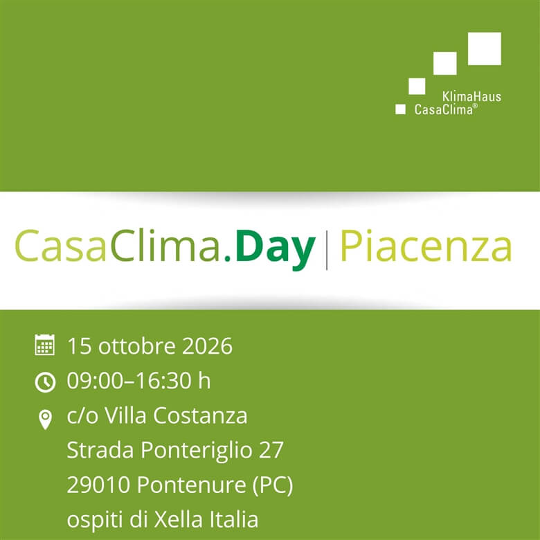 Giovedì, 15 ottobre si terrà a Pontenure (PC) l'ultimo CasaClima Day del 2026.