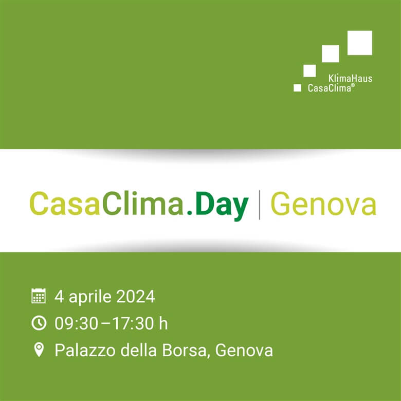 CasaClima invita tutti gli interessati a passare una giornata di studio, organizzata in collaborazione con CNA Genova e Istituto per il Clima Liguria, con gli esperti dell'Agenzia e le aziende partner, con le quali approfondire singole tematiche, servizi e prodotti.