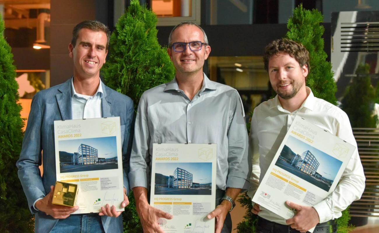 La giuria di esperti ha scelto anche la nuova sede del Gruppo PROGRESS (Arch. Manuel Gschnell - studio DEAR) a Bressanone. Il moderno ed efficiente edificio per uffici in cemento prefabbricato è stato apprezzato dalla giuria per l’alta qualità degli spazi di lavoro per i dipendenti. Un CasaClima Work&Life, pensato con intelligenza e attuato con coerenza.