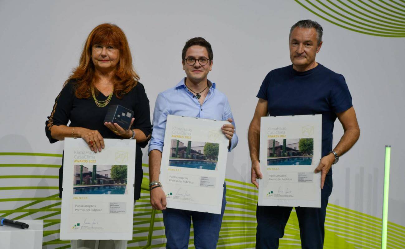Attraverso i voti pervenuti sul sito www.casaclima-awards.it villa N.E.S.T (Arch. Wally Tomé ) a Oderzo (TV) si è aggiudicato il “Premio del Pubblico”. La casa ha raggiunto la classe CasaClima Gold Nature e pur assicurando alti livelli di comfort e qualità abitativa mantiene molto basse le emissioni di CO2. La votazione per l’assegnazione del premio pubblico ha riscosso anche quest’anno un grande interesse, con oltre 17.000 visite del sito.