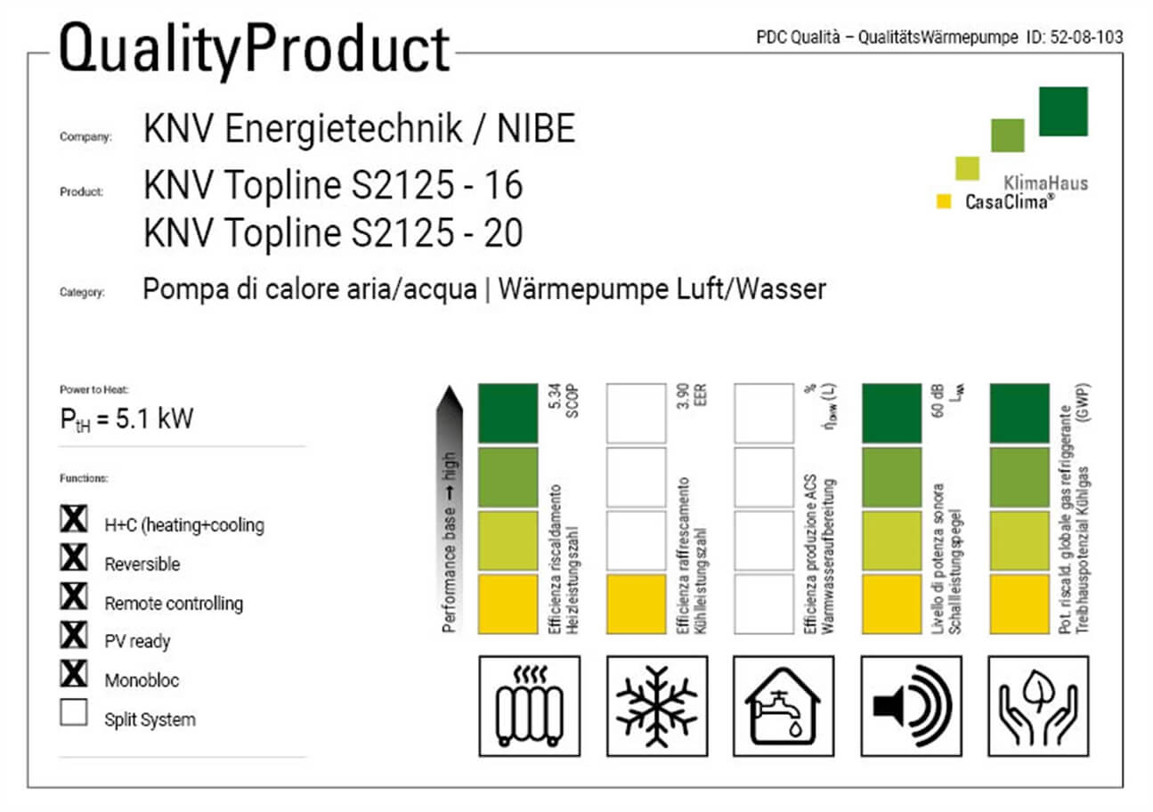 Dotato di un compressore inverter altamente efficiente, Topline S2125 si adatta in modo rapido e flessibile all'attuale fabbisogno di calore di una casa. Ciò contribuisce alla sua elevata efficienza energetica, che si mantiene anche a temperature molto basse, fino a -25 °C.