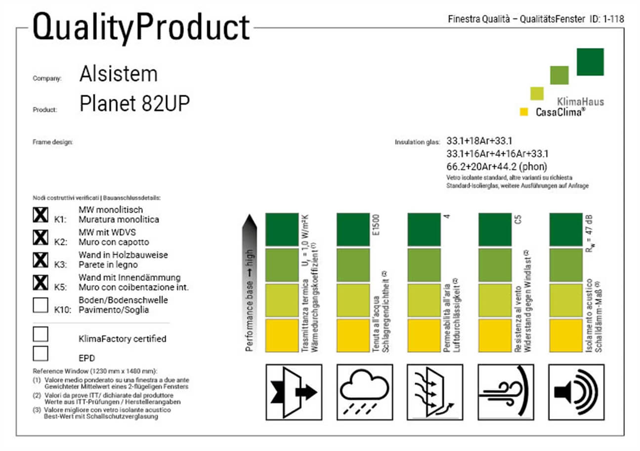 Serie di sistemi in alluminio ad alte prestazioni energetiche con performance di isolamento da casa passiva raggiunte grazie al taglio termico da 48 mm in poliammide a bassa densità, all’utilizzo dei listelli isolanti in PIR SFG (Saturated Fiber Glass) ed alla guarnizione centrale interamente in EPDM espanso.