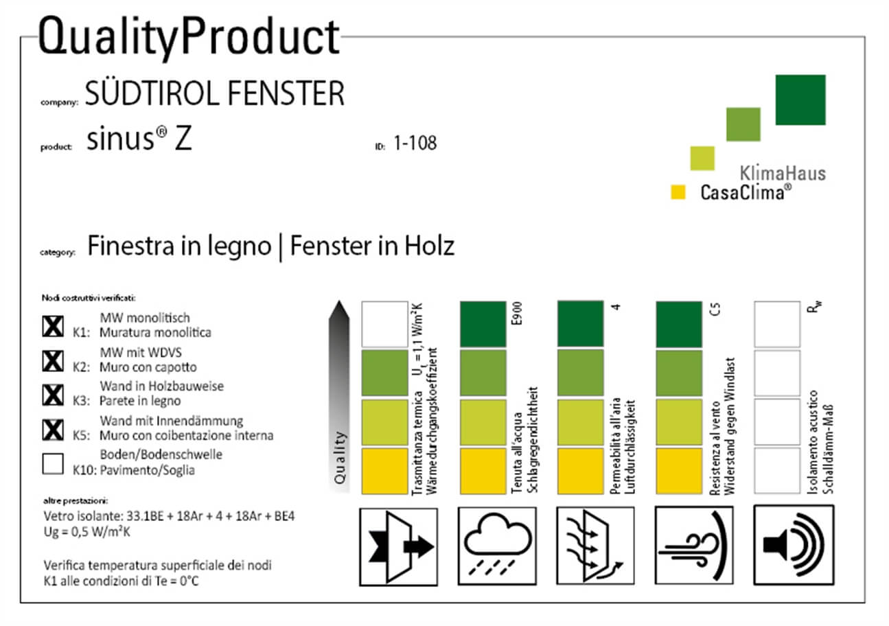 - triplo vetro isolante (Ug = 0,5 W/m²K) secondo la norma di sicurezza UNI 7697