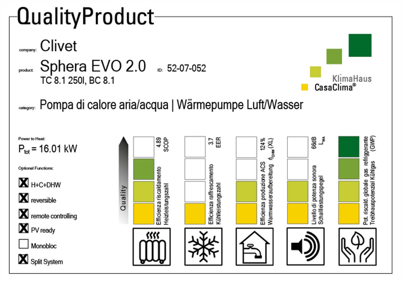 Pompa di calore in due sezioni con refrigerante R-32 e tecnologia inverter per riscaldamento, raffrescamento e produzione di acqua calda sanitaria, dotata di valvola a tre vie ACS integrata e possibilità di abbinare un accumulo della capacità desiderata da 190 o 250 litri.