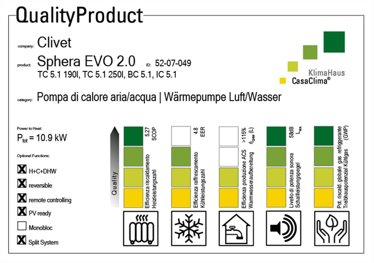 Pompa di calore in due sezioni con refrigerante R-32 e tecnologia inverter per riscaldamento, raffrescamento e produzione di acqua calda sanitaria, dotata di valvola a tre vie ACS integrata e possibilità di abbinare un accumulo della capacità desiderata da 190 o 250 litri.