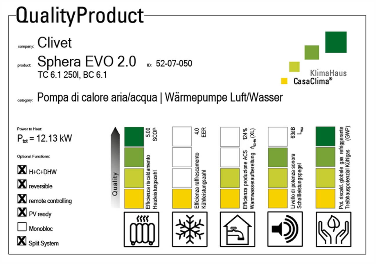 Pompa di calore in due sezioni con refrigerante R-32 e tecnologia inverter per riscaldamento, raffrescamento e produzione di acqua calda sanitaria, dotata di valvola a tre vie ACS integrata e possibilità di abbinare un accumulo della capacità desiderata da 190 o 250 litri.