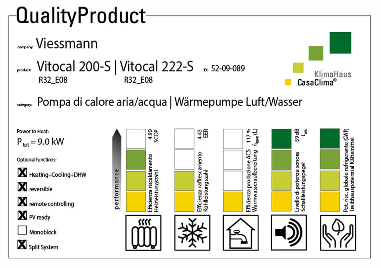 Il sistema è costituito da una unità esterna monoventola e da una unità interna murale (Vitocal 200-S) o a basamento (Vitocal 222-S) dotata di accumulo da 190 litri per la produzione integrata di acqua calda sanitaria.